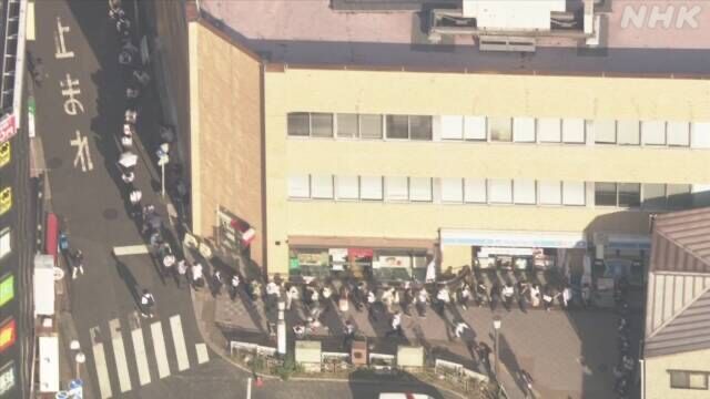 8日午前7時半すぎ、埼玉県川口市のJR西川口駅では、駅前から線路沿いの道路にかけて数百メートルにわたって列ができていました。