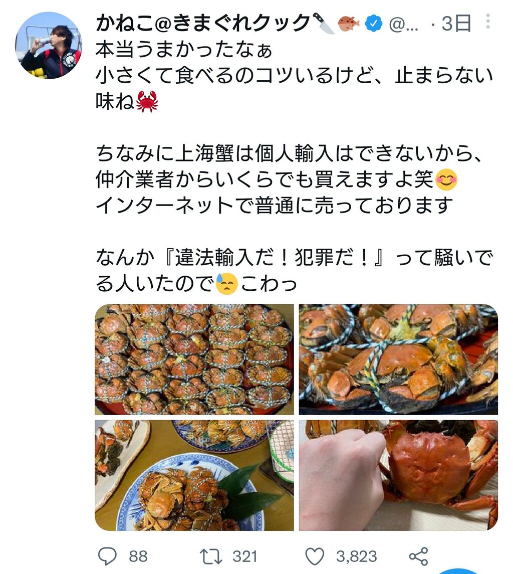 生きた上海蟹を捌いていく動画をあげる(現在は非表示)