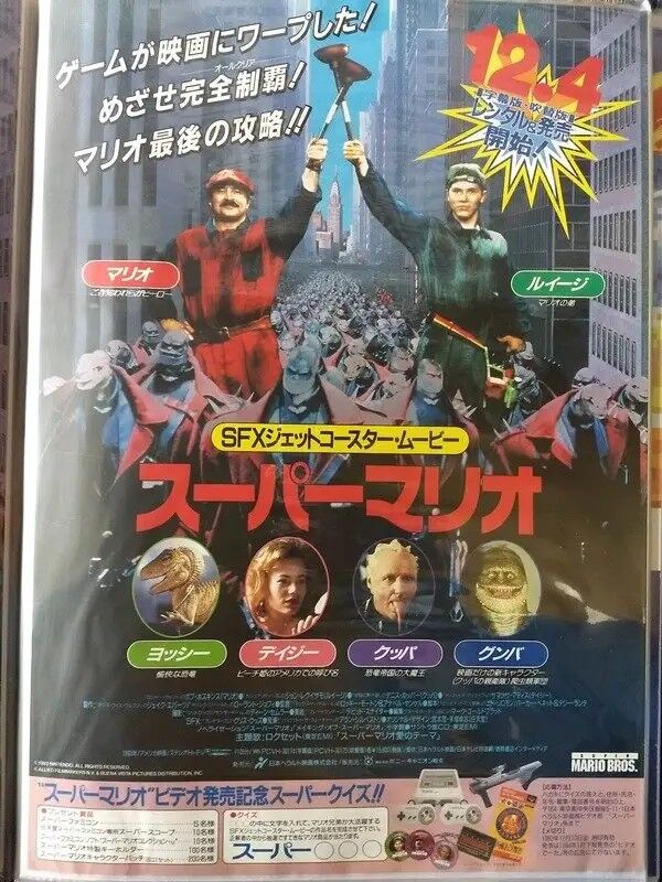 巨費50億円を投じて製作された本作は、日本初公開時に「マリオが、ハリウッドを本気にさせちゃった。」というキャッチコピーが添えられた。アニメからかけ離れたリアルすぎるビジュアルと、シュールな世界観は日本でも話題となり、30年経った現在もカルト的人気を誇っている。マリオ役はボブ・ホスキンス、ルイージ役はジョン・レグイザモ、デイジー役はサマンサ・マシスが担当したほか、悪役クッパは『イージー・ライダー』などで知られる故デニス・ホッパーが演じた。