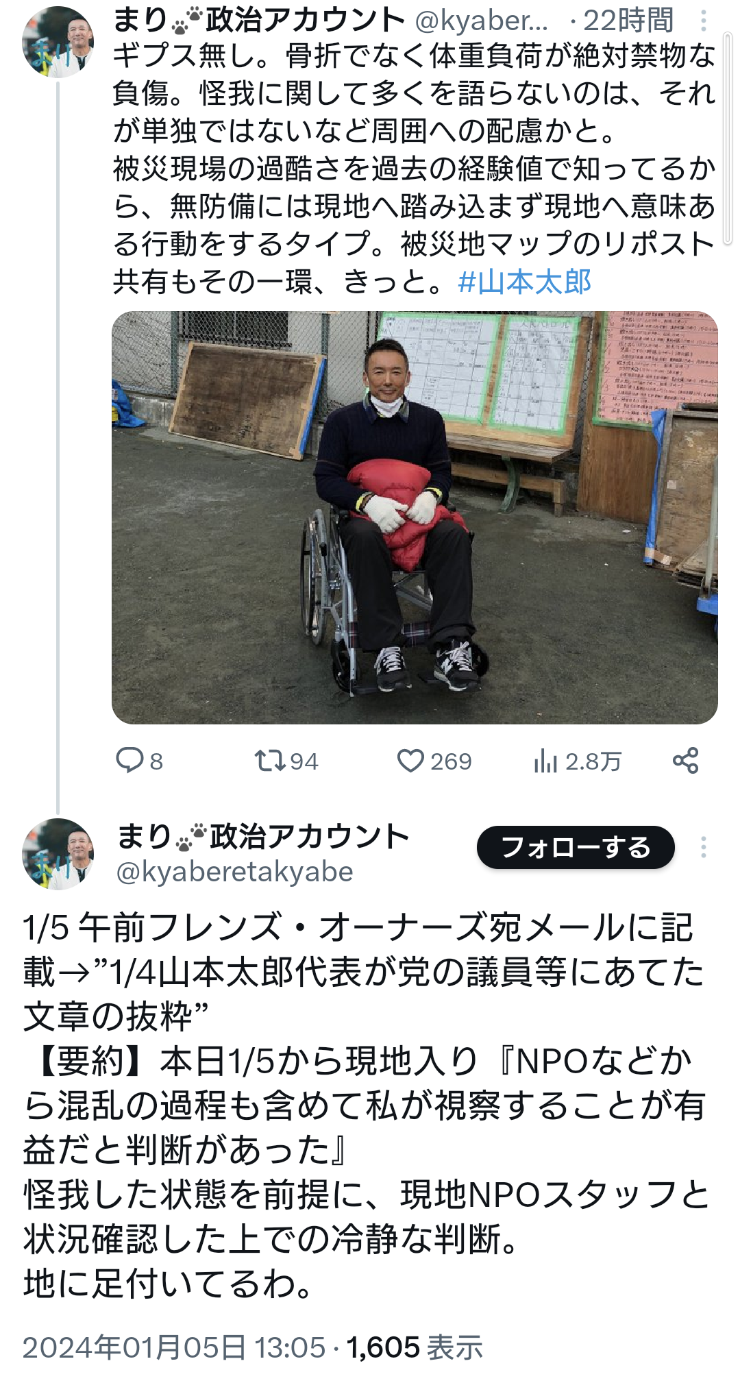 山本「被災地にたかったったw」