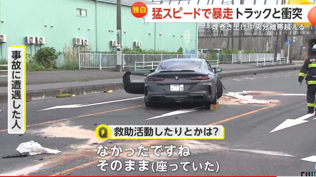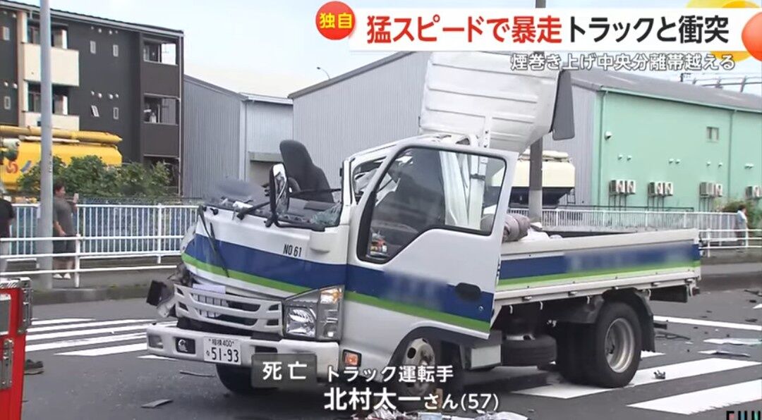 【独自】暴走高級外車が空中に飛び出しトラックに衝突の瞬間... トラック運転手死亡も高級車運転の中国人男性は救助せず 神奈川・海老名市