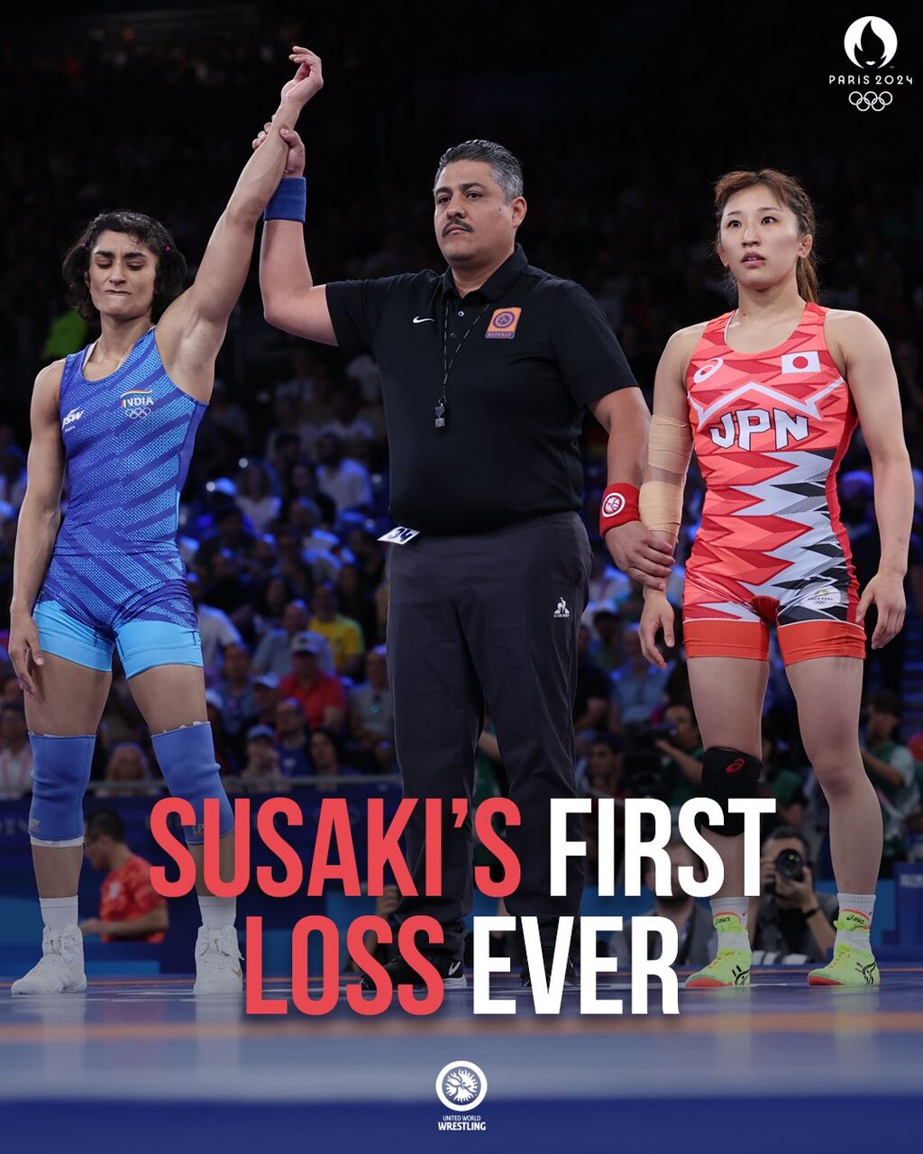 須崎は海外選手を相手に、この試合前まで94連勝をマーク。絶対女王と評され、今大会でも金メダルの大本命とされていた。それだけに敗北は衝撃を呼び、勝ったビネシュの母国インドでは「史上最大の番狂わせ」「五輪でのインド人レスラー史上最高のものだ」などと驚きをもって報じられていた。