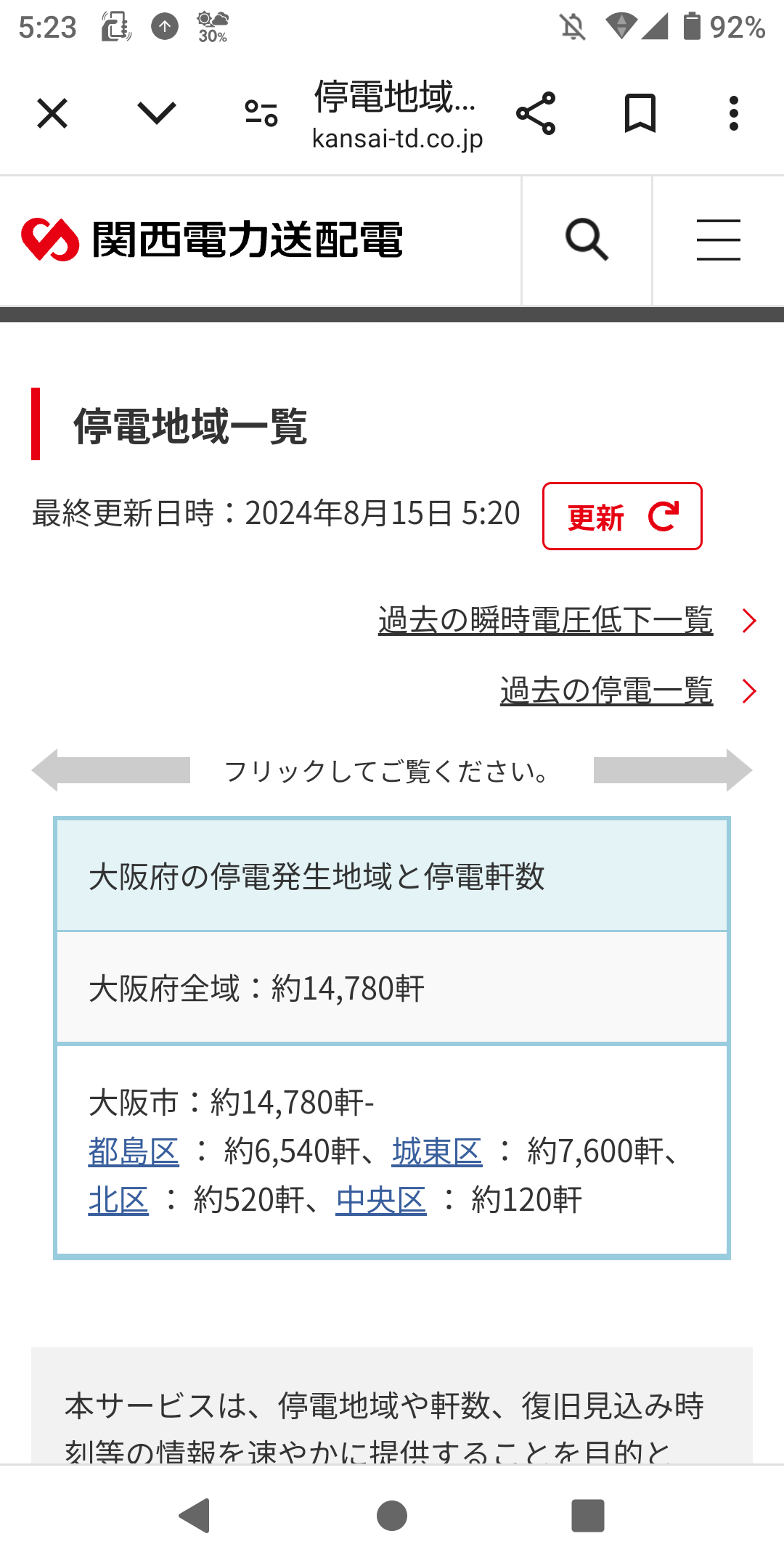 大阪市内まだ15,000軒停電中か