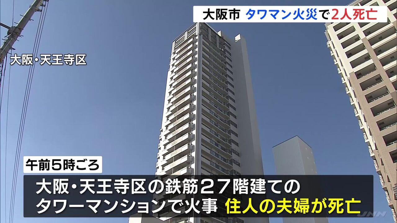 【速報】大阪市天王寺区のタワーマンションで火災 夫婦2人死亡 小学生の孫は無事