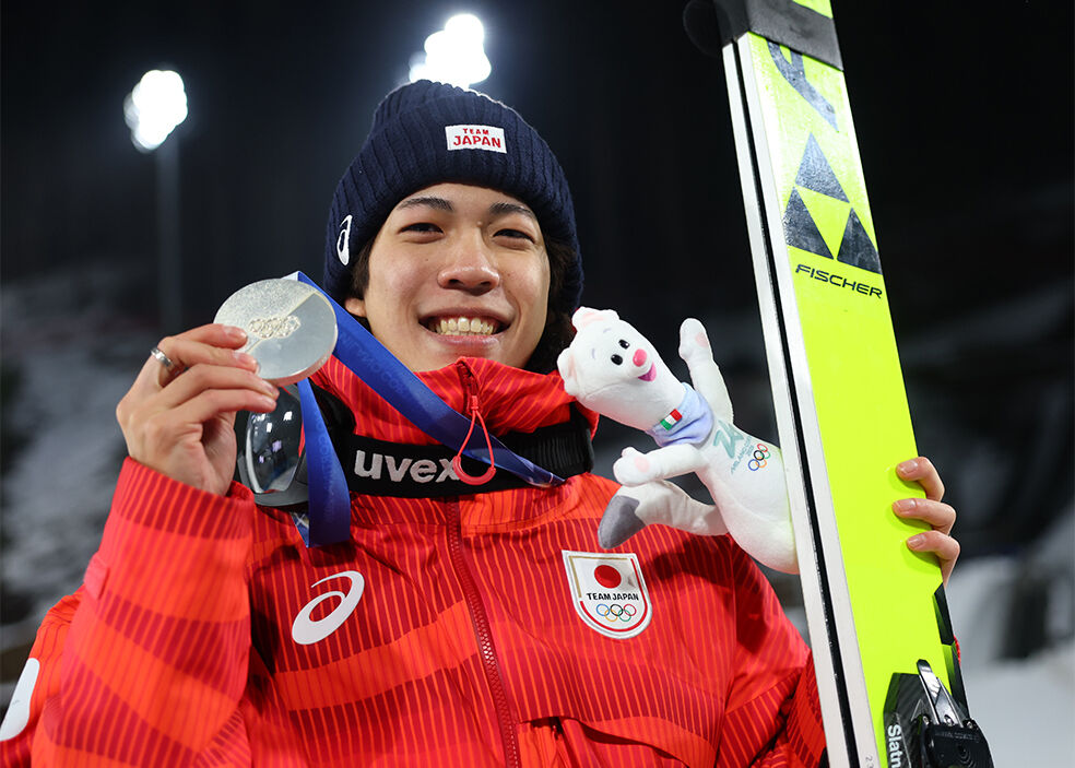 五輪新採用の2人一組で飛ぶ男子スーパー団体が行われ、日本はノーマルヒル銅メダルと、ラージヒル銀メダルの二階堂蓮(24)=日本ビール=と、